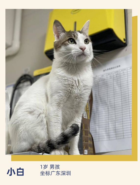 救助故事:小白出现在小区流浪的猫咪,喂食的时候因为被很多别的来吃粮的流浪猫欺负身上总带着伤,胆子比较小,却也不怕人,别的猫咪吃完就走很警惕,它却一直在我家楼下等着我,也没猫友也没自己的活动区域,非常可怜,颜值也很好,希望有耐心有时间的人能去看看他,愿意给它一个遮风挡雨不用再担心受怕的温暖的家。