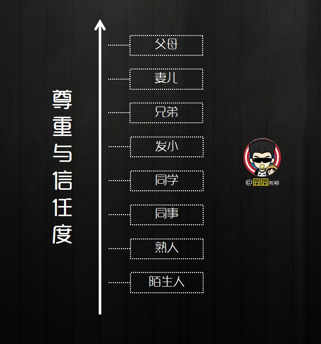 再比如:我们做一个信任度排序,你会发现双方关系越亲昵,信任度也就越高,其实本质来说就是公开象限逐渐放大的过程。