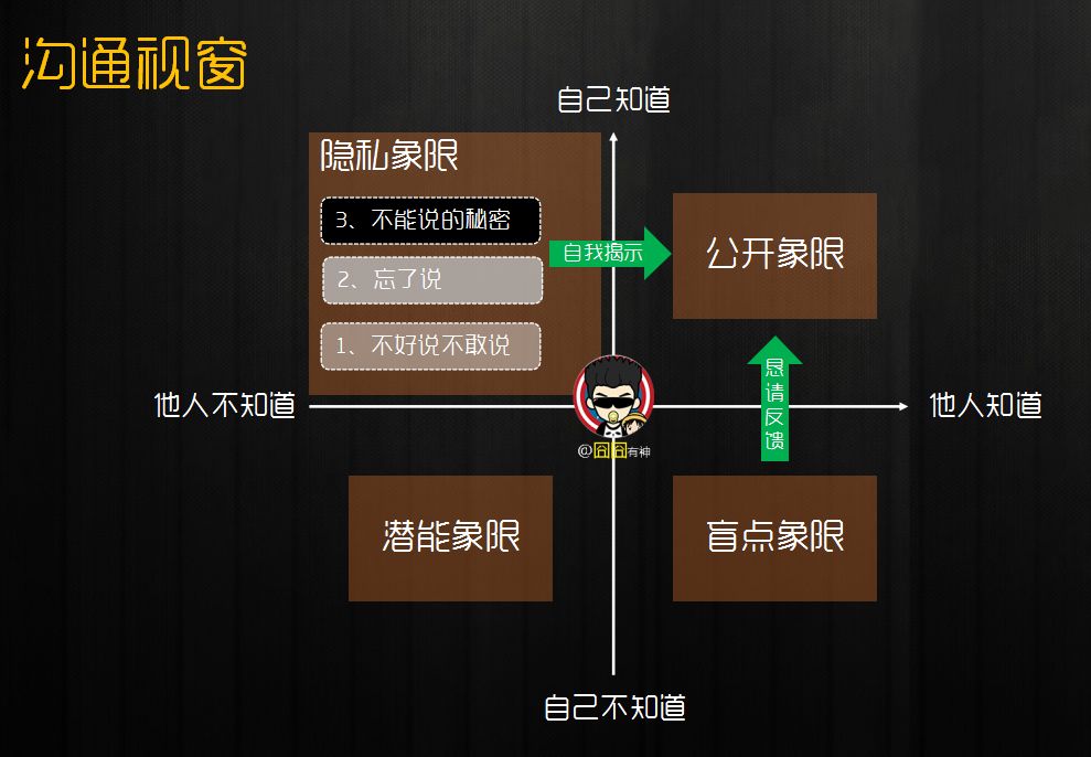 一是隐私象限转化为公开象限,称为自我揭示,主动向他人袒露自己的故事、自己的想法,让别人多了解自己;