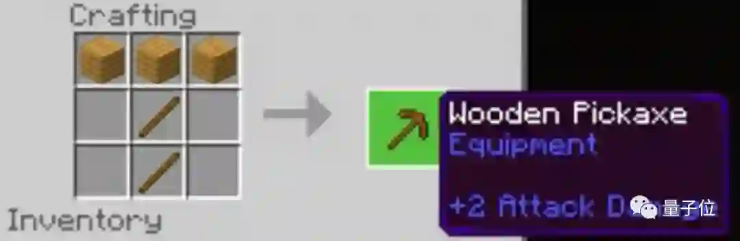 第三步,在工作台上合成木镐,用来挖石砖: