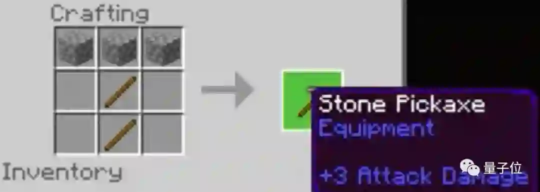 第四步,获得石砖之后,需要合成一个石镐,用来快速挖铁矿:
