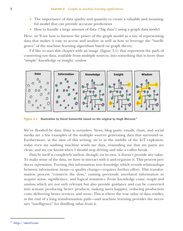 第3章讨论了图在机器学习中的应用。我们将介绍机器学习工作流中的图形技术,包括数据源、图形算法和数据可视化。还讨论了作为处理模式的图形和图形定义的工作流,并分别给出了具体的示例。