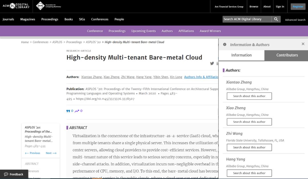 本次入选ACM ASPLOS论文题目为《High-density Multi-tenant Bare-metal Cloud》,由阿里云研究员兼创新产品线总负责人张献涛、阿里云高级技术专家郑晓、阿里云资深技术专家杨航及其他神龙团队共同撰写。