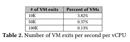我们采样了30万个虚拟化实例的运行数据,发现每秒1万次以上VM-Exit的实例达到3.82%,甚至还有不少每秒超过10万切换的实例。
