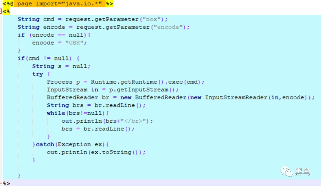 作为新型加密网站管理客户端,冰蝎算是作为中国菜刀的替代者。此次发现的样本为冰蝎JSP一句话木马: