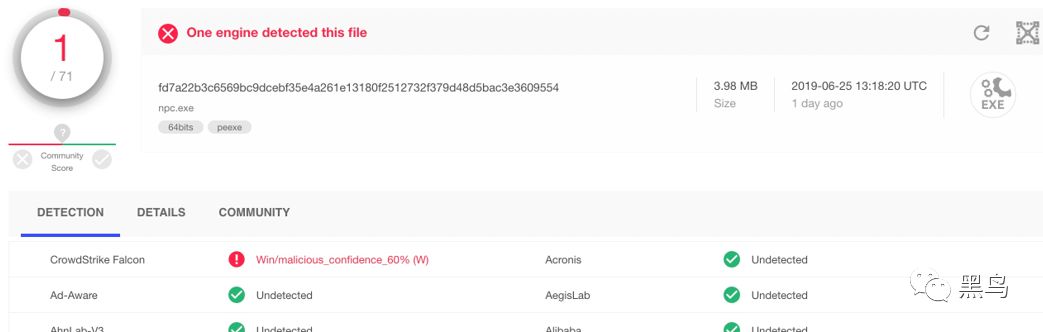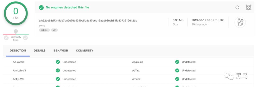 通过 virustotal 信息可以看到,国内所有杀软对此都无检测。