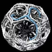 其实网格蛋白的俗称是“三腿蛋白”,图中蓝色为单个网格蛋白,名不虚传的大长腿