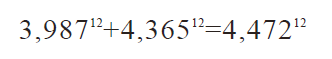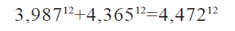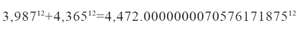 你可以用计算器亲自进行检验。计算 3,987 的12 次方,将其与 4,365 的12 次方相加,然后计算结果的12 次方根,你就得到了 4,472。