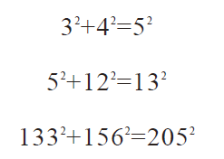 这个方程与毕达哥拉斯定理关系密切,但丢番图对三角形及其边长不感兴趣。相反,他邀请读者寻找这个方程的整数解。费马对于寻找这种解所需要的技巧已经非常熟悉了。他知道,这个方程有无数个解。这些所谓的毕达哥拉斯三元组的解包括: