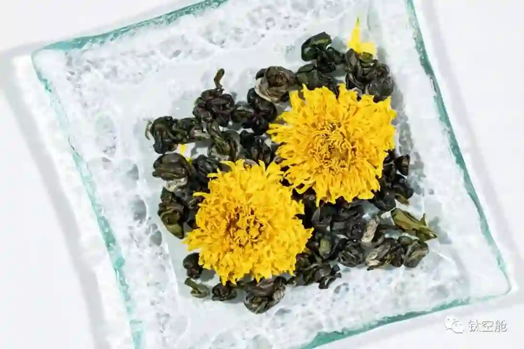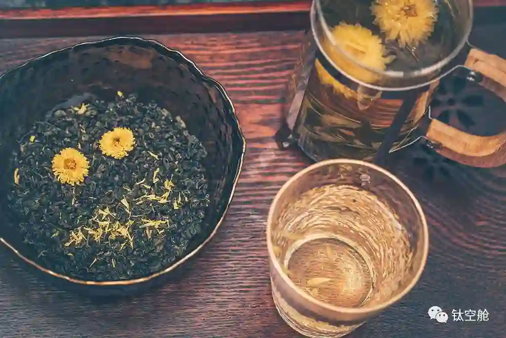 其实懂茶的人都看出了火眼金睛茶的奥秘,绿茶和菊花的搭配。