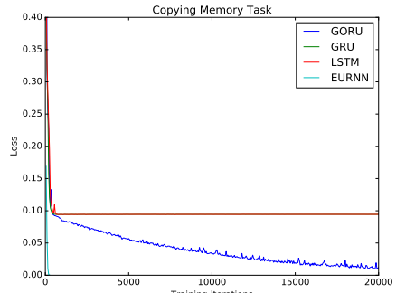 FAIR 和 EPFL 的一个团队出了一篇类似的论文《Kronecker Recurrent Units》(Cijo Jose, Moustpaha Cisse, Francois Fleuret),他们在论文里也展现了在复制任务中使用酉矩阵的可行性。他们展示了一种能够大幅减少所需参数的矩阵分解方法。文中描述了他们使用复数的动机。