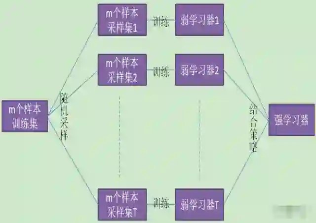 2) 如果是分类算法预测,则T个弱学习器投出最多票数的类别或者类别之一为最终类别。如果是回归算法,T个弱学习器得到的回归结果进行算术平均得到的值为最终的模型输出。