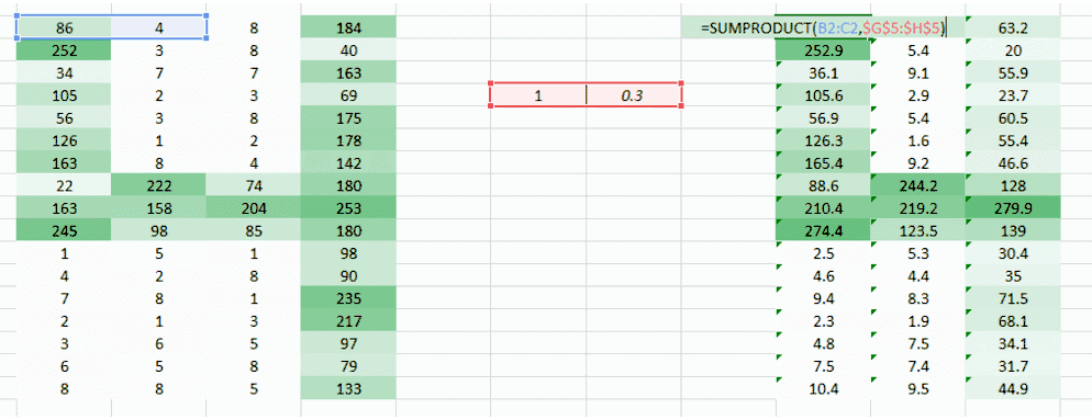 同时表格 (0.1,5) 的权重值也将给我们一个输出表格。