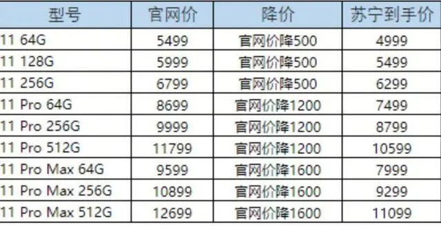 苏宁手机官方微博表示,iPhone11启动全线降价,最高降价力度1600元,iPhone11最低到手价4999元。
