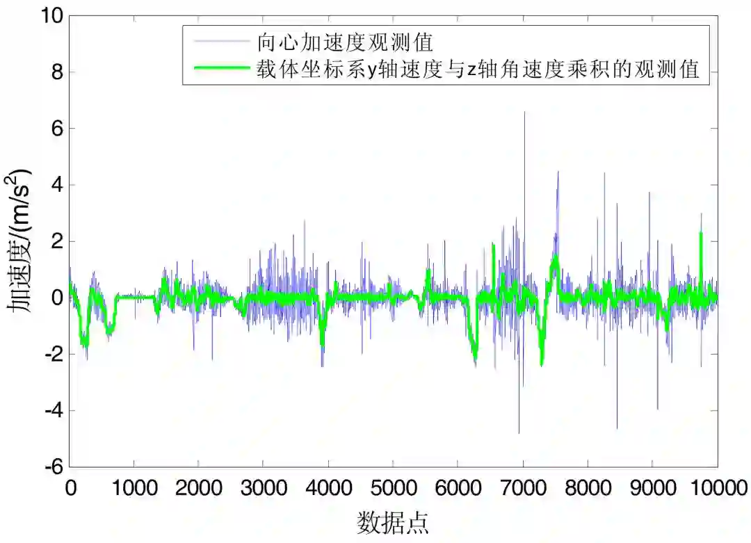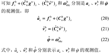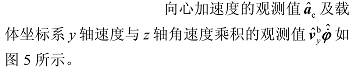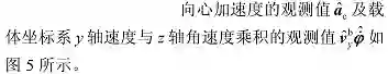 我们可以通过惯导的输出及其计算值来获取向心加速度、载体坐标系 y 轴速度以及角速度的观测值。