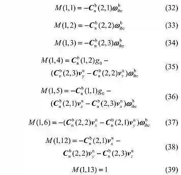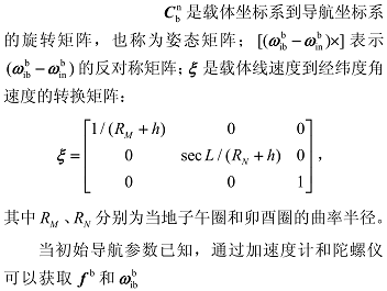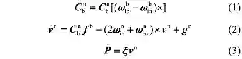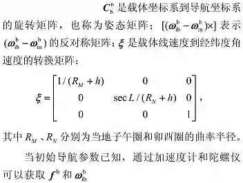 对于惯性导航系统,载体的姿态、速度和位置的变化率可以通过以下方程计算得到 [7]: