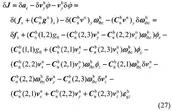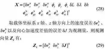 用 δJ 表示向心加速度差值的误差,可以将其作为误差状态系统模型的一种新观测量,其计算式可为: