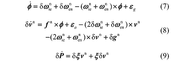 在导航坐标系下惯导误差传播方程如下 [8]: