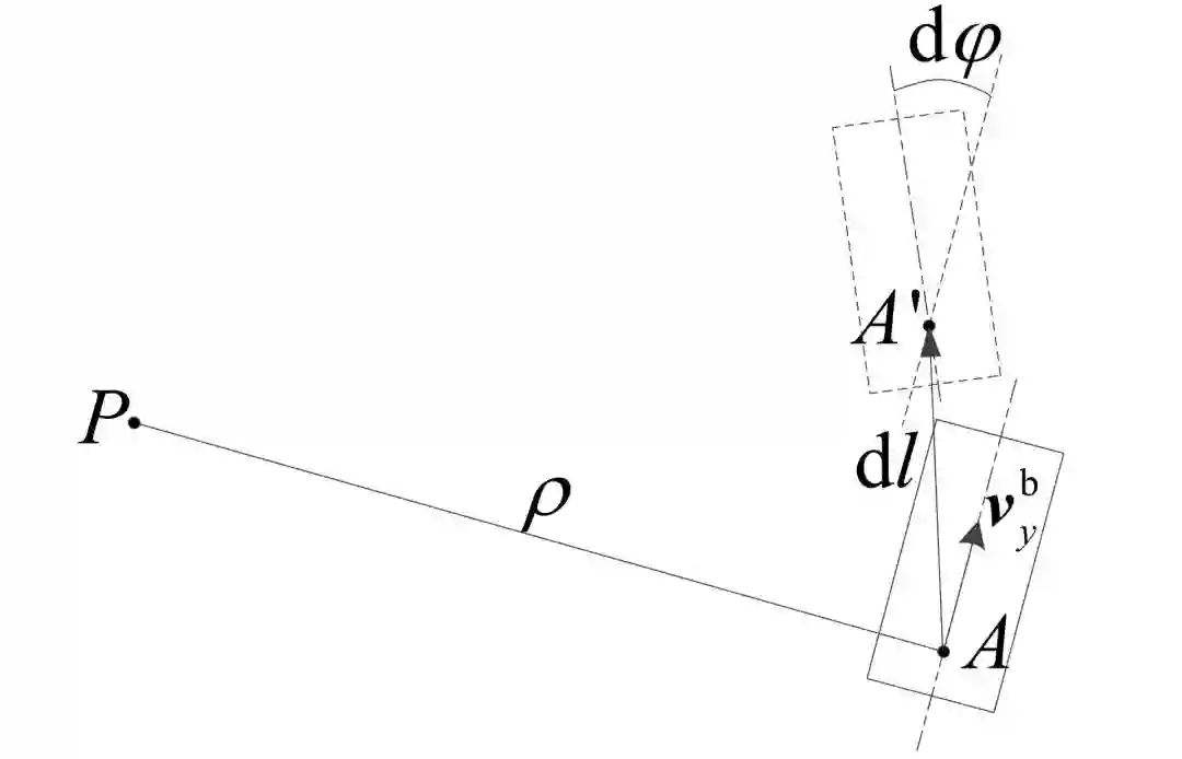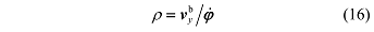图 3 中,ρ 是车辆运动的瞬时曲率半径,v^b_y 是车辆在载体坐标系 y 轴方向上的速度。用 φ 表示车辆载体坐标系 z 轴的旋转角速度,则曲率半径 ρ 可以表示为 [10]: