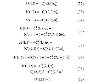根据误差方程 (27),可以推导得到 M 矩阵,M 中非零元素有: