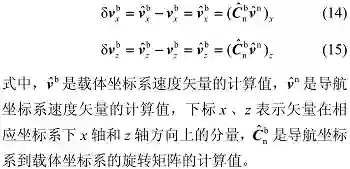2)使用载体坐标系 x 轴、z 轴方向上的速度误差作为观测量进行 kalman 滤波,称其为滤波 1;