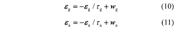 式中,τ_g、τ_a 分别是 ε_g、ε_a的时间相关常数,w_g、w_a都是白噪声。