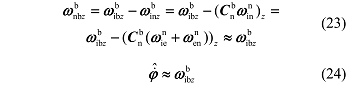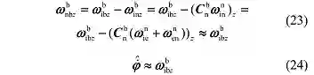 因为地球自转角速度和车辆线运动形成的相对于地球的旋转角速度相对较小,本文中将这两项角速度忽略,因而: