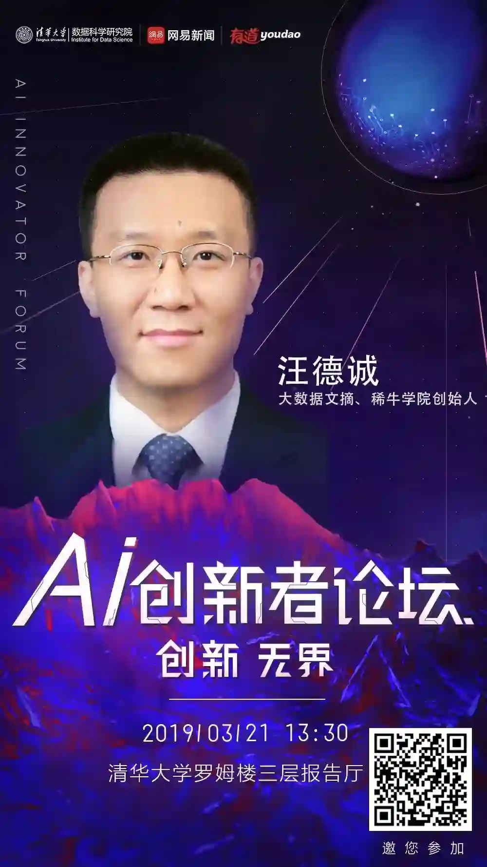 由清华数据院、网易新闻、网易有道联合筹办的“中国AI创新者论坛”将于3月21日下午在清华大学罗姆楼三层报告厅举办。