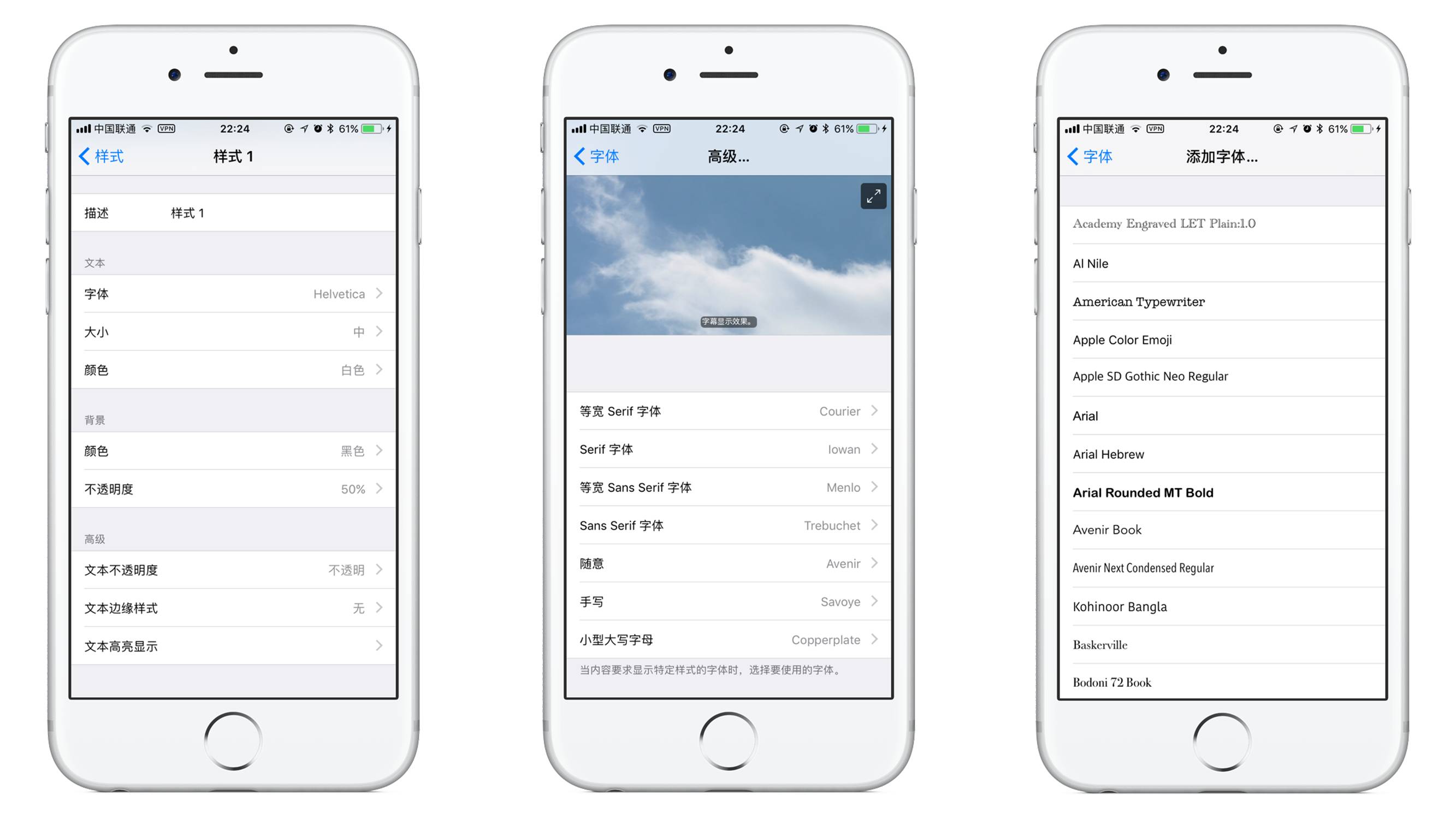 支持 CC 的视频你将会在 QuickTime 播放器的右下角看到字幕按钮,点击即可选择你需要的语言。在 iOS 上前往设置 - 通用 - 辅助功能 - 字幕与隐藏式字幕 - 样式,你还可以自定义 CC 的样式。iOS 11 之前默认的选择为「透明背景」,iOS 11 似乎会将这一设置改为「外框文本」。