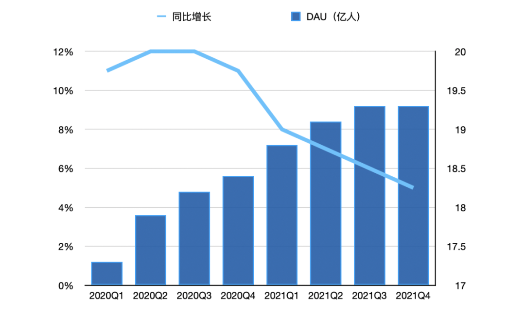 2020年二季度,Facebook的DAU及MAU同比增速均为12%,但去年四季度,两项指标分别下降为5%、4%。