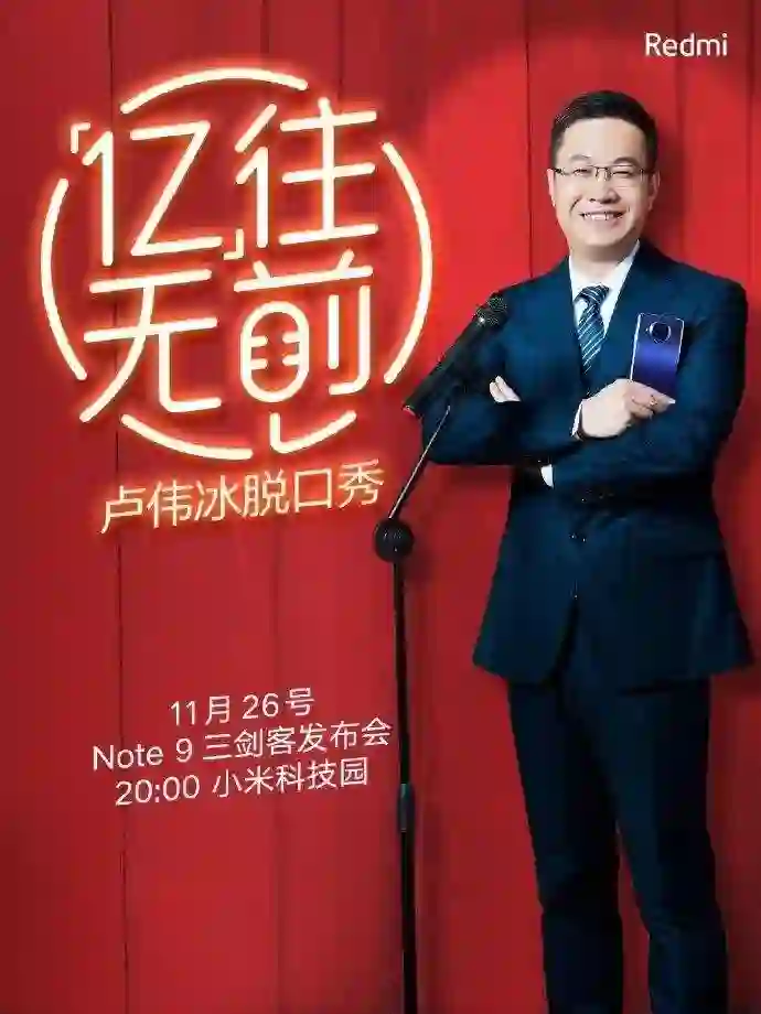 今早,红米品牌总经理卢伟冰在微博上表示,这次将换个方式聊聊 Redmi 和 Note 系列,这次发布会将以 「亿往无前」 为主题,并且以脱口秀的形式呈现。
