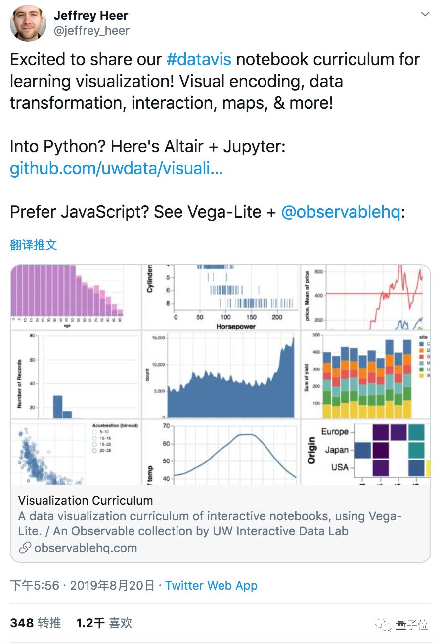 刚刚出炉的这篇GitHub教程,来自数据可视化大牛、D3.js作者Jeffrey Heer,教你7步搞定Python数据可视化。