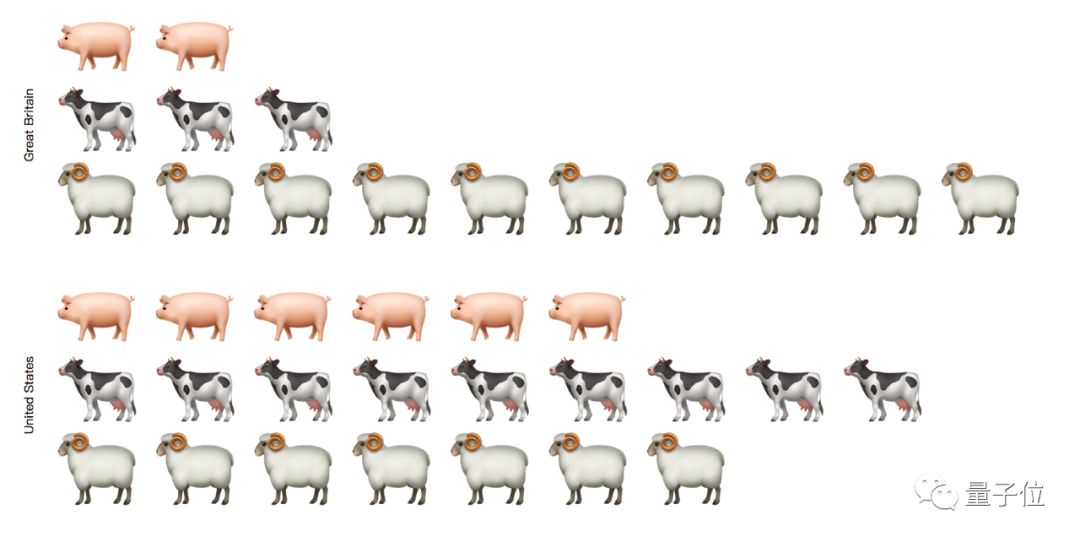 甚至还有可爱的表情符号画风,生动的展现出英美两国的养殖业状况。