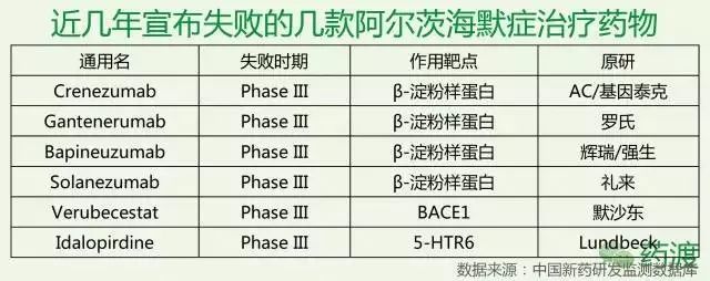 阿尔茨海默症领域是新药研发失败的重灾区。据2014年刊登于阿尔茨海默症研究及疗法杂志(Alzheimer's Research & Therapy)上的一篇文章报导,在2000-2012年间,244个处于临床阶段的阿尔茨海默症药物,仅有一个被美国FDA批准,药物研发失败率高达99.6%。