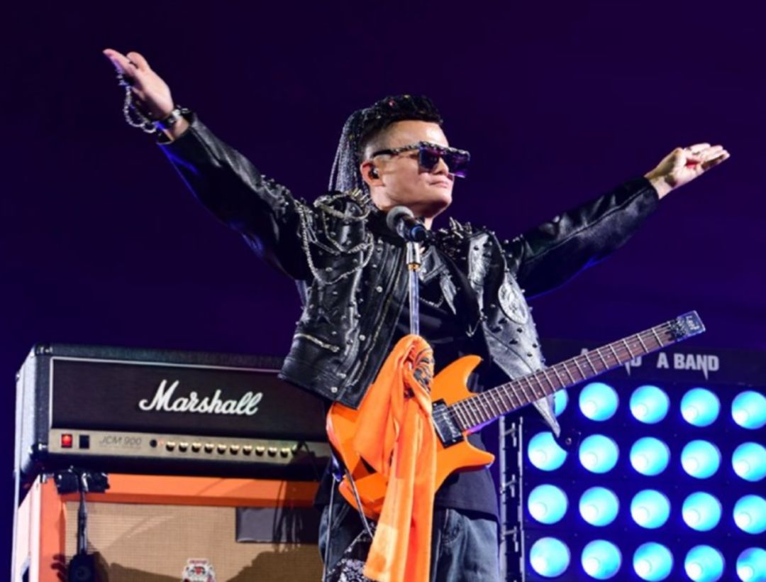 在6万人的捧场下,马云也“放飞自我”,梳了脏辫、穿了铆钉皮衣、背着电吉他,以一副硬核金属朋克的造型,豪情演唱汪峰《怒放的生命》。