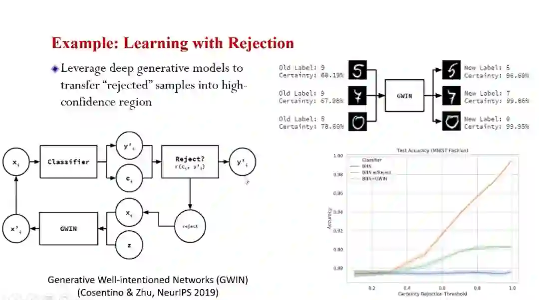 上图的算法可以在遇到不确定或者是很难的样类时选择拒绝。这种“拒绝”的功能传统算法是做不到的。贝叶斯加持下的置信度计算可以实现这种功能。同时,我们可以对“被拒绝”的样本进行变换,得到一个新的样本,同时提升它的分类精度和置信度。