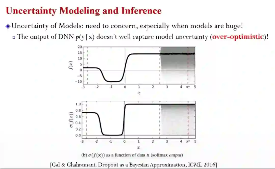 通常模型给的输出(例如深度神经网络)往往是一个概率,研究员通常把此概率解释成置信度。而实际上并不能反映不确定性的因素,这种度量也过于乐观。