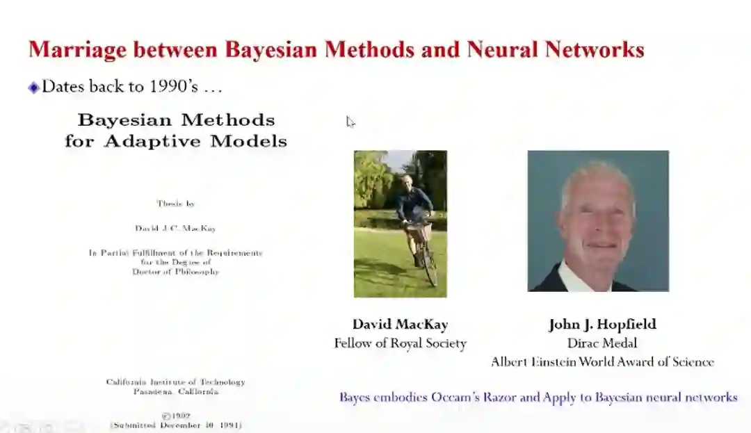 例如David MacKay(其导师是John JHopfield)的博士论文就是用贝叶斯方法进行神经网络结构的选择。论文中提到的一个结论也非常有名,即做贝叶斯一定程度上可以等价奥卡姆剃刀准则。