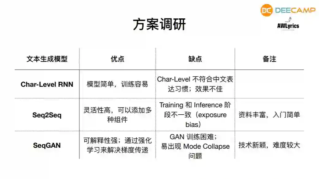 清楚了问题,我们去调研一下已经有的文本声称方案,最终把它的优点和缺点列出来,然后我们选择了SequenceGAN作为基础模型,并且在这个之上提出我们的模型——SequenceGAN。