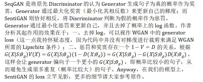 可以看到“世间人都笑我太疯癫”和“你不知道rapper付出多少才配纸醉金迷”占据了我们生成的结果。mode collapse,简单来说就是输入的改变不会影响生成的结果。为此我们调研了一些 Paper,最终采用了SentiGAN 中提出的 Penalty-based Objective Function: