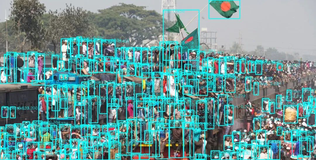 最后当然要在「开挂民族」坐火车的场景下测试一番,密集恐惧症慎入。虽然把旗子检测成了风筝(很多目标检测算法都容易出现这样的问题),但总体来说检测效果可以说是非常惊艳的。它检测出了图片中大部分的人物,和机器之心此前报道过的高精度人脸检测方法-DBFace 的准确率有得一拼。需要注意的是,DBFace 是专用于人脸检测的方法,而本项目实现的是通用物体检测。