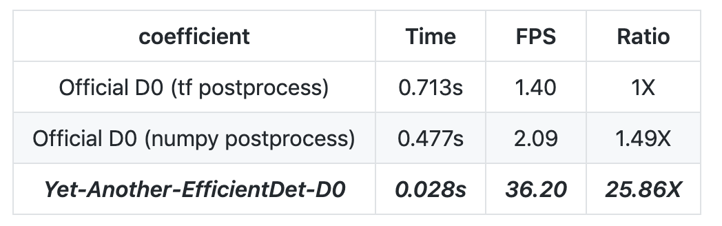 而面向第二个项目,虽然 star 不及前者一半,但显然可靠度更甚前者。作者表示,第二个项目起码在 D0 上有论文成绩的支撑,同时 repo 也提供了 coco 的 pretrained 权值 31.4mAP。然而实操后作者得到 24mAP,同时社区普遍也在 20-22 范围中。