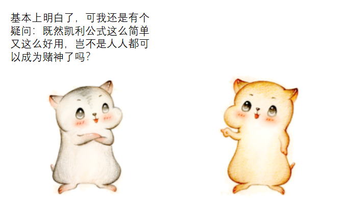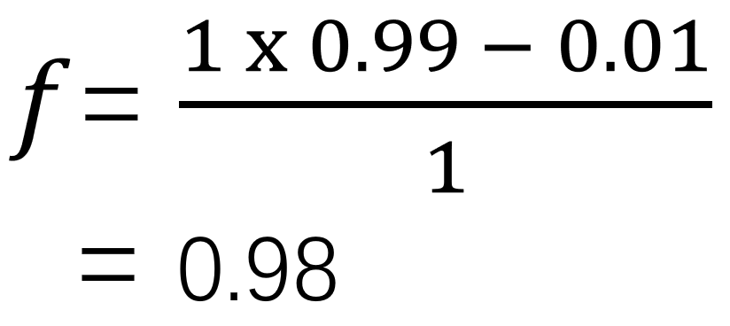 假如投注50元,赢了可以收回100元,净赚50元,输了净亏50元,那么赔率就是1:1,b=1(注意:计算赔率是用 净收入/净亏损,网上有些文章搞错了,把这种情况的赔率当成了2:1)