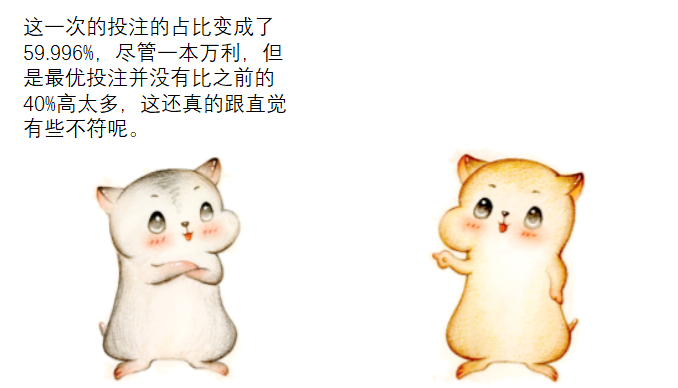 因此,当我们有100元的时候,我们的最优策略是一次投入总资金的20%,也就是20元。