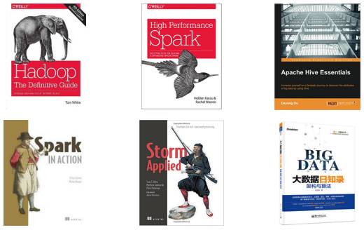 书籍方面,国外O'Reilly、Manning两家出版社在大数据领域出版了不少优秀书籍,特别是Manning的In Action系列和O'Reilly的Definitive Guide系列。前者侧重提高动手能力,后者则知识比较全面。In Action和Definitive Guide系列的书籍很多已翻译为中文,一般分别译为xxx实战、xxx权威指南。另外一家出版社Packt也值得关注。Packt的书比较薄,适合入门。至于中文原创书籍,推荐张俊林的《大数据日知录》,该书是对大数据存储和处理技术的全面梳理,系统性强。其他书籍不逐一点评,若想购买或阅读可参考豆瓣对该书的评分。