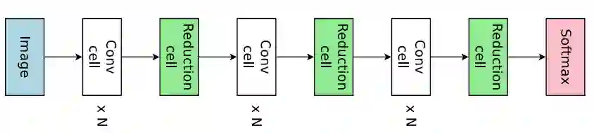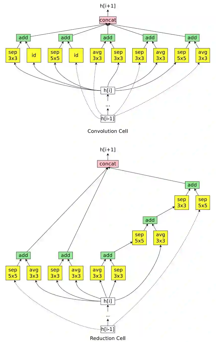 图 7:ENAS 从大型搜索空间中发现的用于图像分类的网络架构。