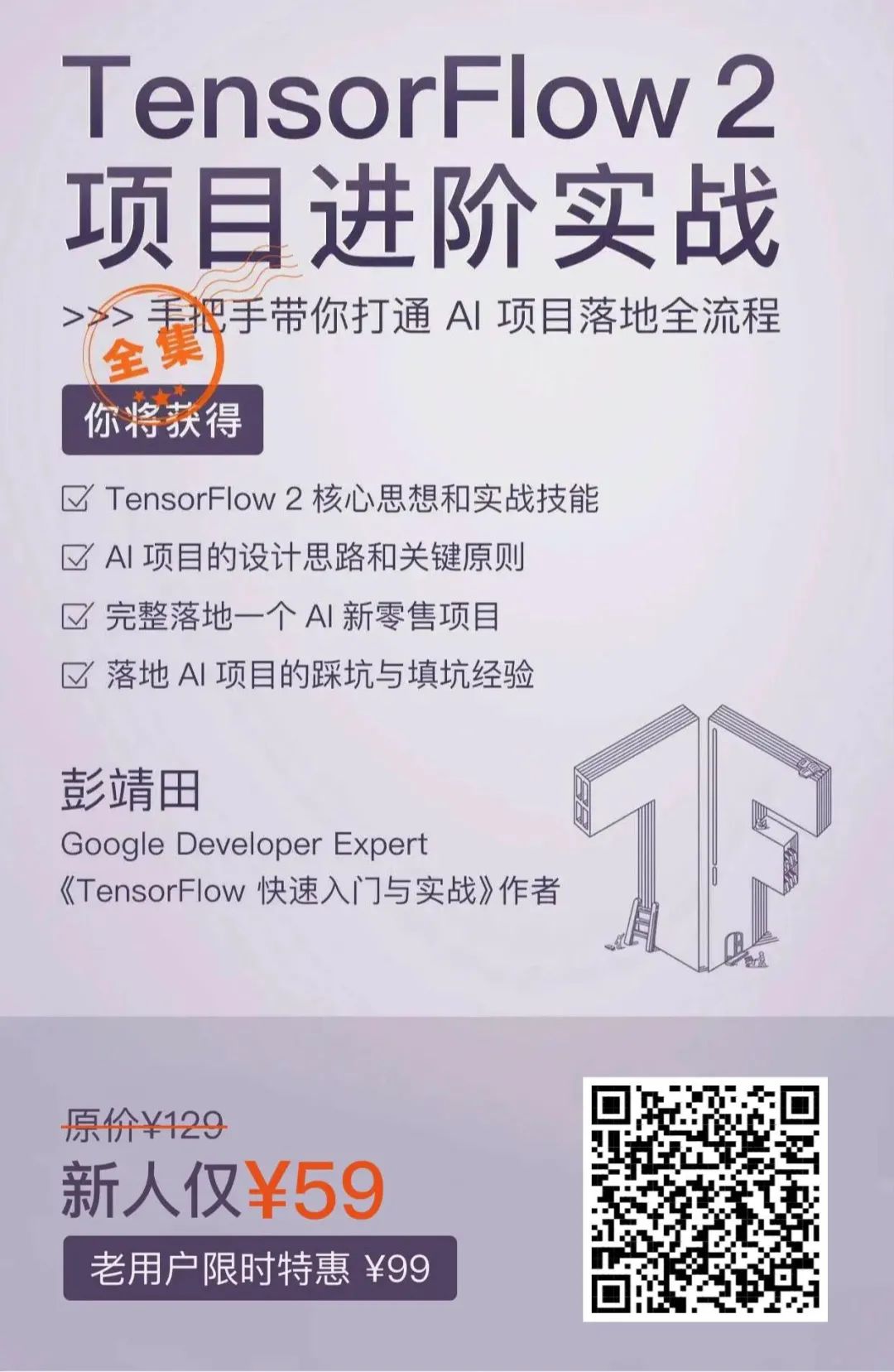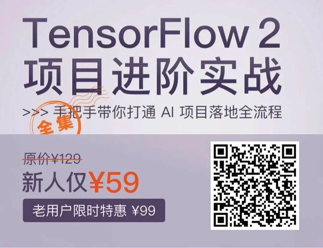 👇点击「阅读原文」,新人仅需 ¥59 拿下 TensorFlow 2 。