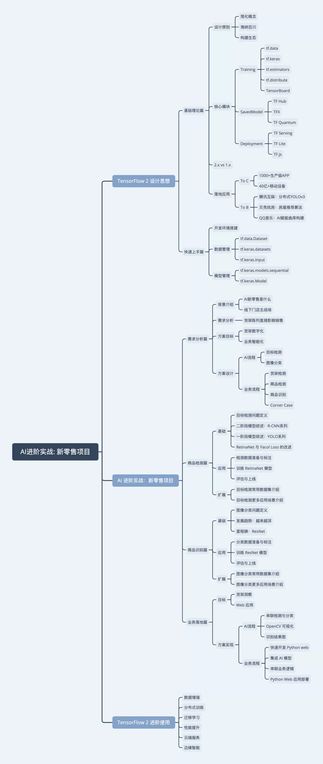 在这个课程中,他系统讲解了 AI 项目落地的设计思路和关键原则,带你掌握 TensorFlow 2 核心思想和实战技能。同时,通过完整落地一个 AI 新零售项目,让大家能够了解在真实的生产环境当中,AI 是如何帮助企业降本增效,解决实际问题的。