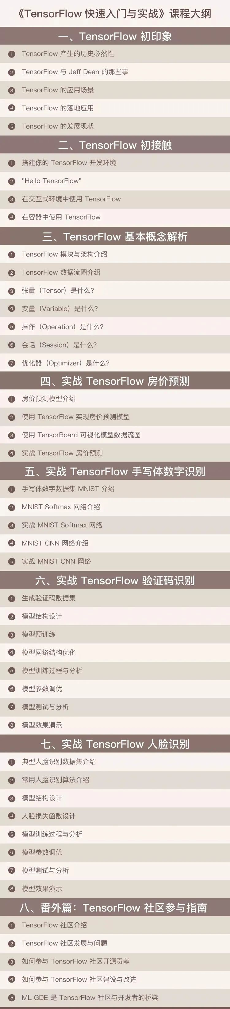 这张图谱出自彭靖田,之前看过他的《TensorFlow 快速入门与实战》,由浅入深讲解了四个 TensorFlow 实战项目,跟着学下来,感觉收获很大。前段时间,又刷了他出的第二季《TensorFlow 2 项目进阶实战》,讲得真的太硬核了,真心推荐。